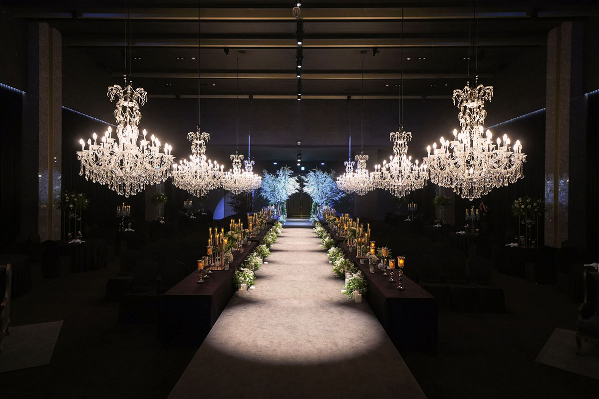 버진로드 양쪽으로 보이는 샹들리에는 신부 입장에 맞춰 한줄씩 천천히 내려오는 효과도 가지고있다.