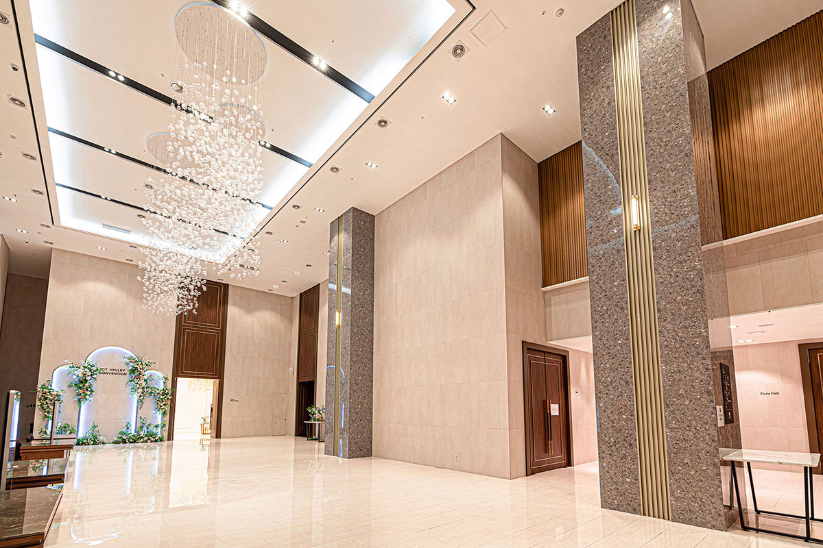 먼저 예식장 로비의 천고가 높고 넓다. 단독홀이라서 해당 예식타임의 하객은 전부 해당 타임의 손님이라서